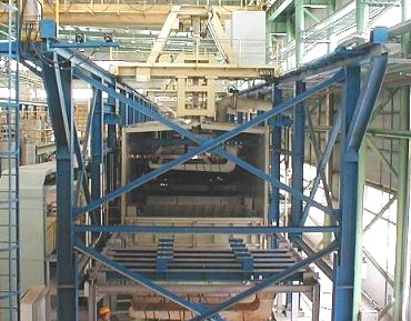 需處理的材料按照處理步驟由吊車懸掛著,自動(dòng)地、由程序控制經(jīng)過每個(gè)槽子。